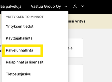 Yrityksesi pääkäyttäjä voi tarkistaa, onko Valvoja käytössä Palvelunhallinnan kautta.