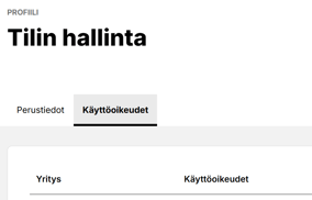 Käyttäjähallinnassa voit tarkastella ja hallinnoida yrityksen käyttöoikeuksia palveluissamme.