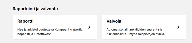 Aktivoi Valvoja käyttöösi Valvojan hallintasivulla seuraavasti: Kirjaudu sisään tilille, navigoi Vastuu-portaalin sivun alas ja valitse tilinäkymästä Valvoja.